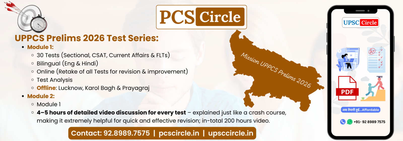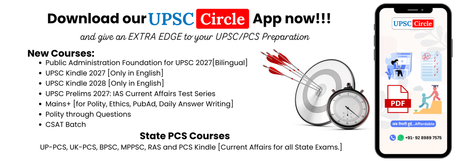 IAS Circle is temporarily unavailable and currently under maintenance. Meanwhile, you can explore the PCS Circle website and the UPSC Circle app. For course-related inquiries, feel free to contact us at 9289897575.